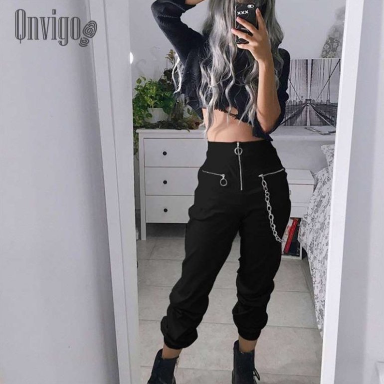 Очаровательные женские брюки-карго в стиле Харадзюку.