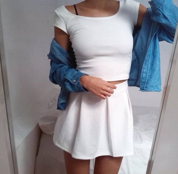 Мини юбка и топик.