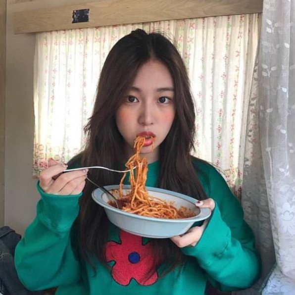 Кореянка ест.