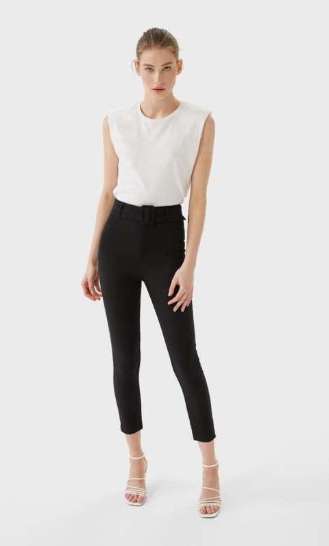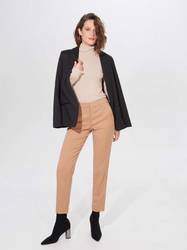 Укороченная водолазка и штаны.