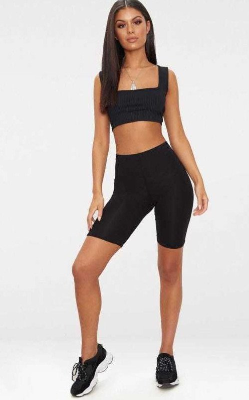 Недлинные обтягивающие шорты.