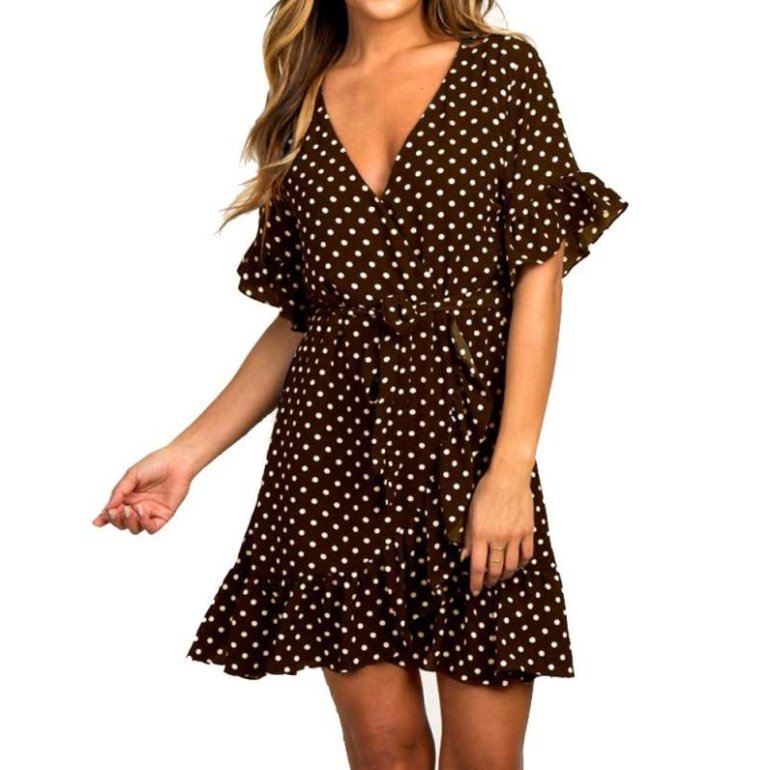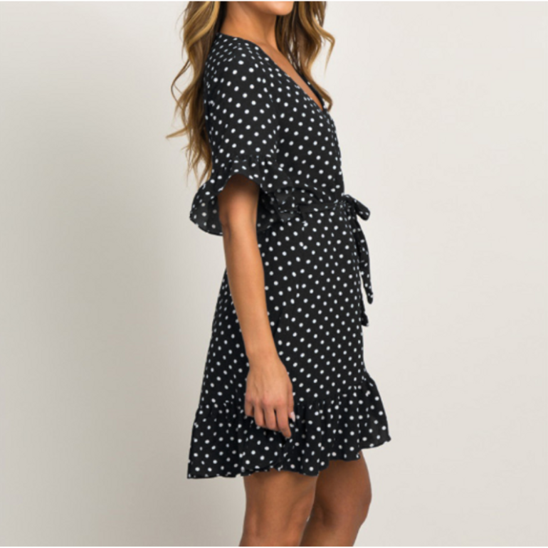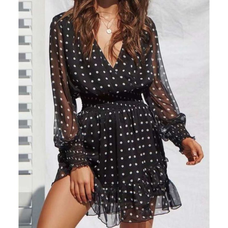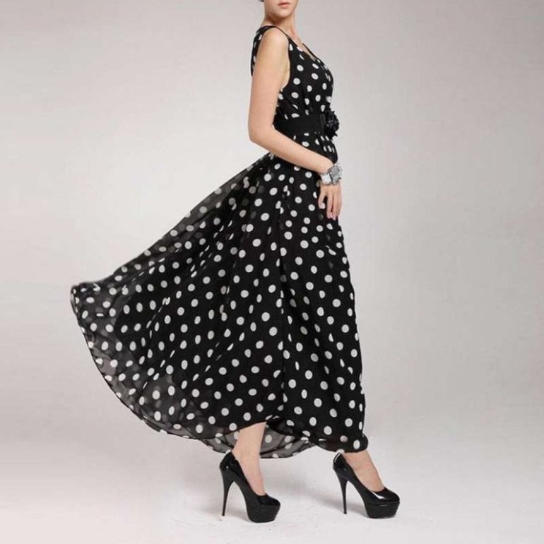 Женское платье в горошек.