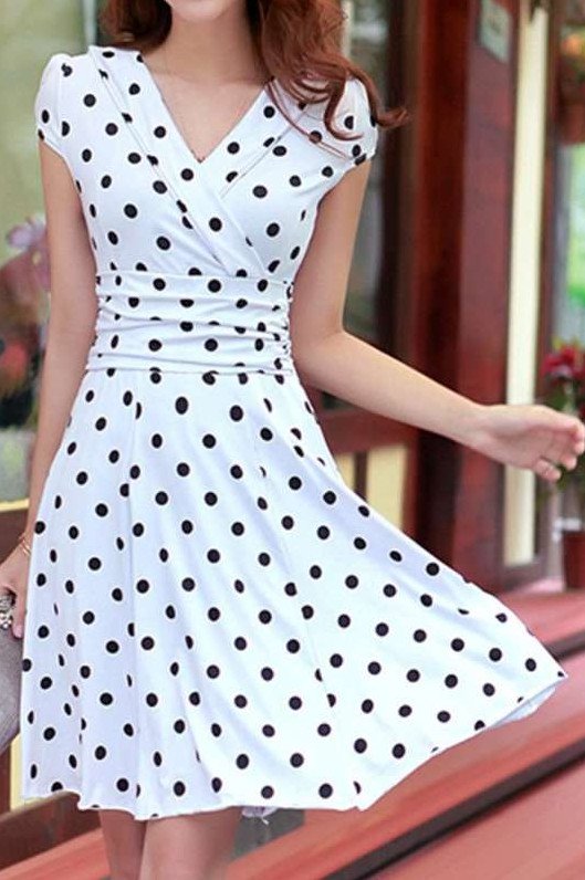 Престижные красивые платья в горошек.