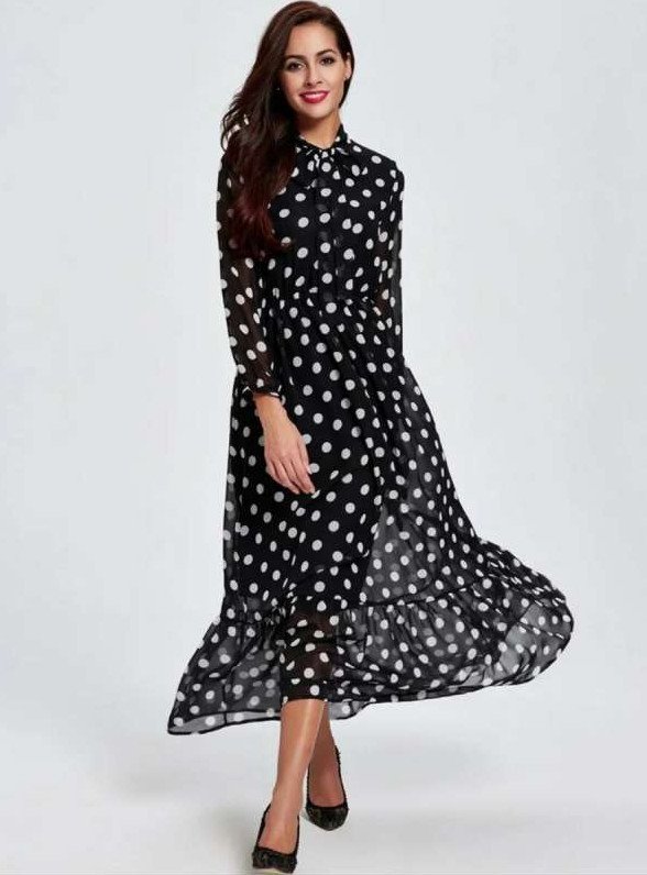 Polka Dot красивые платья шифон.