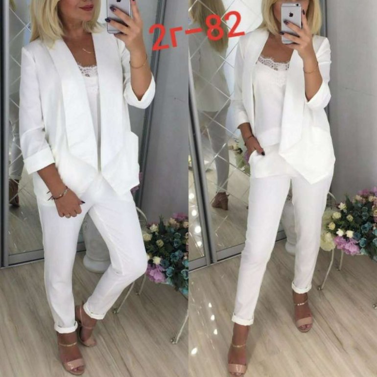 Белоснежный брючный костюмчик дамский.