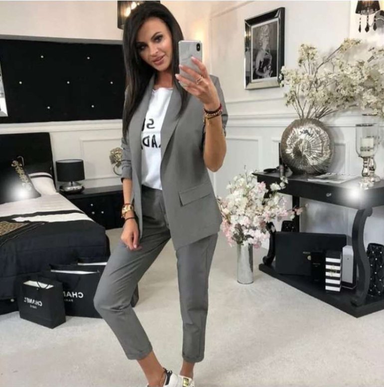 Брючный костюмчик дамский с кедами.