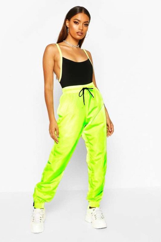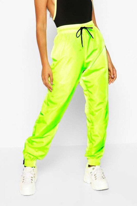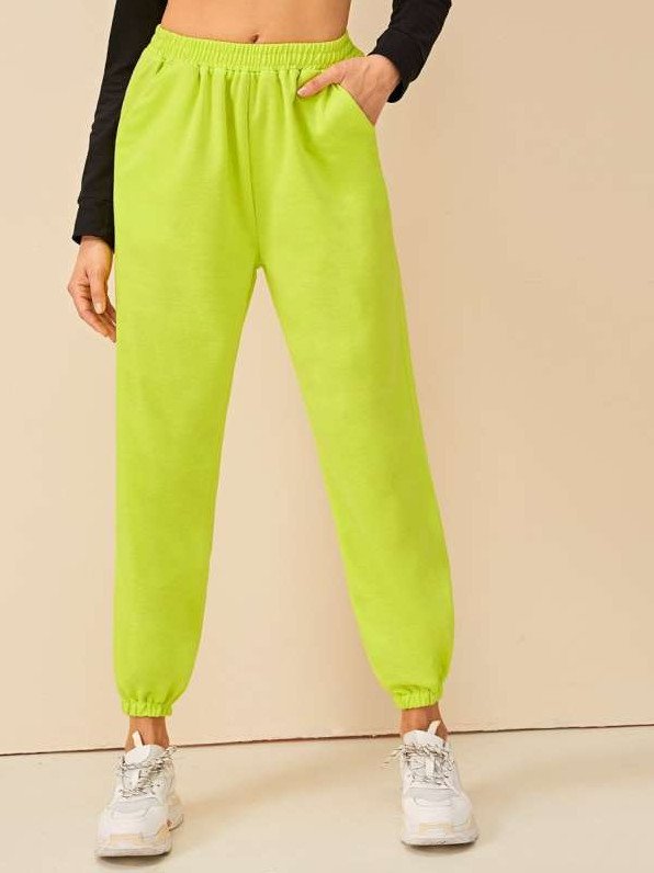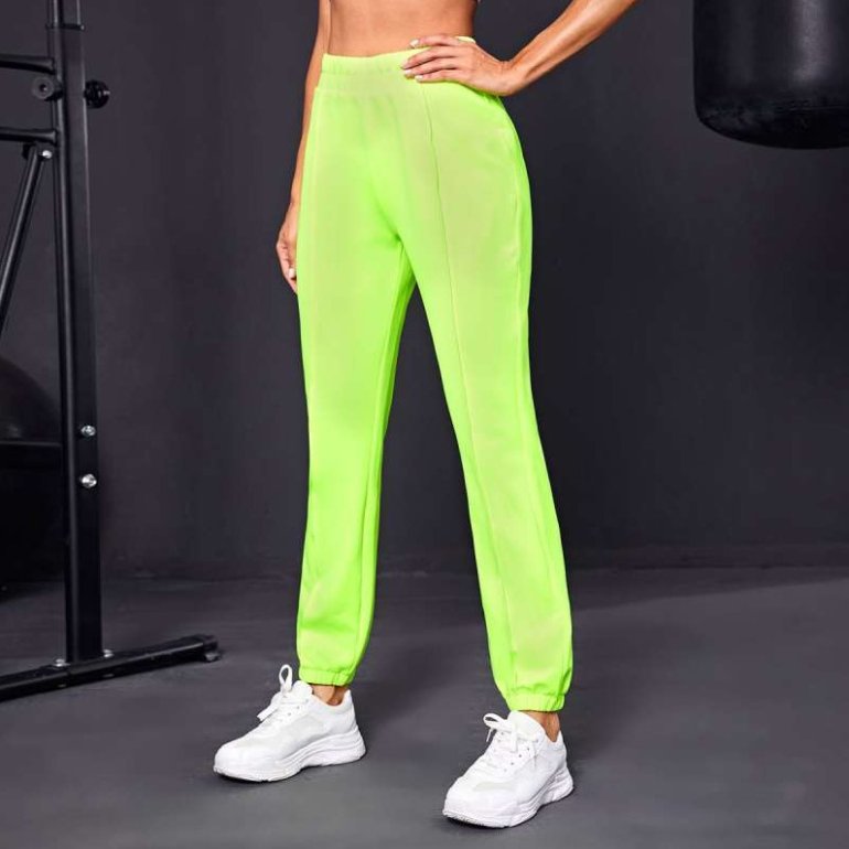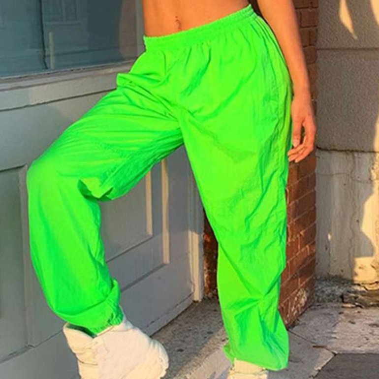 Салатовые спортивные штаны.