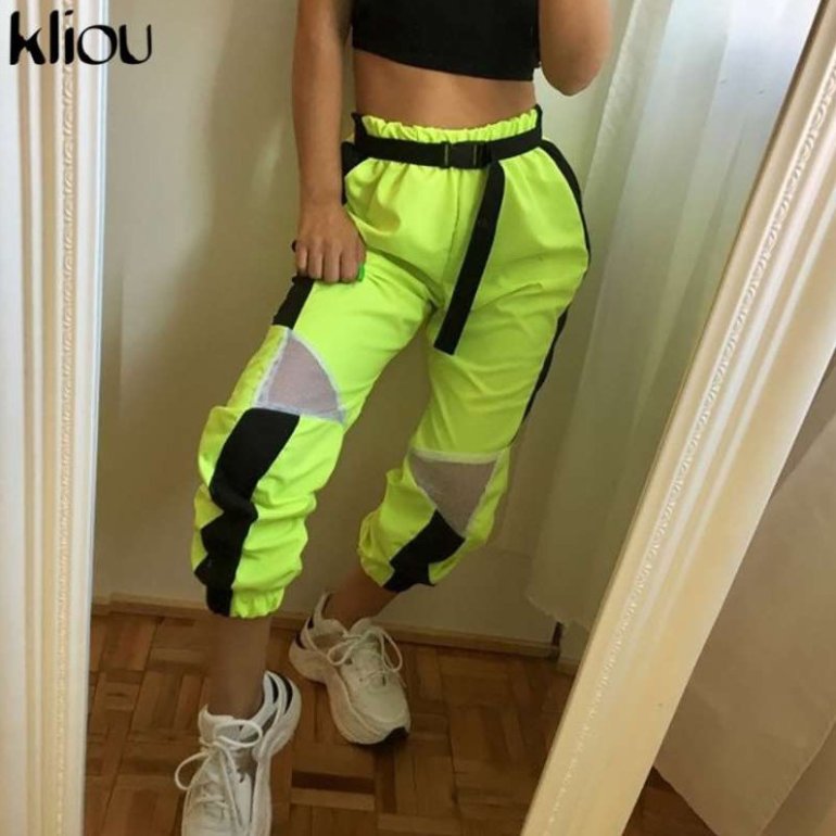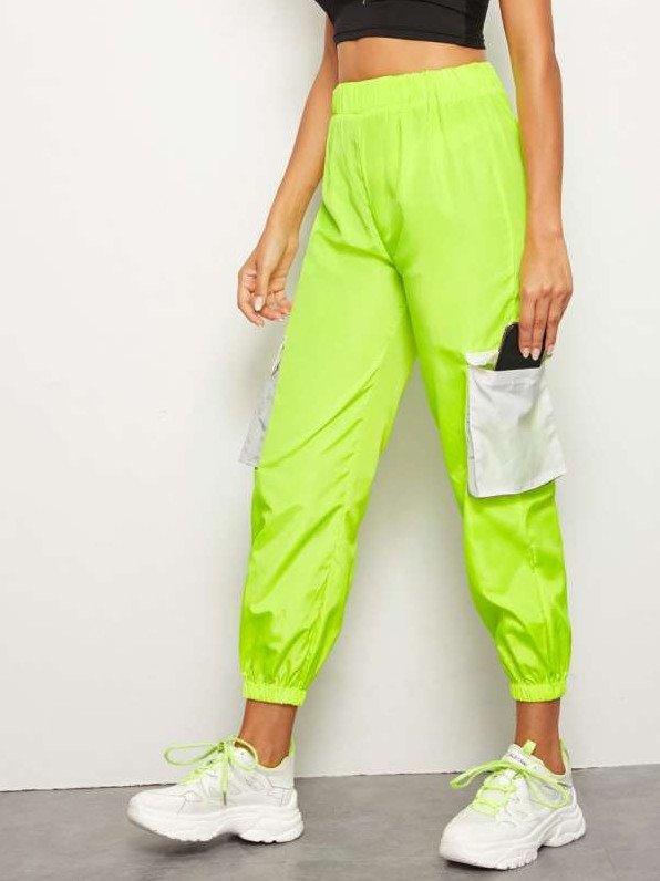Неоновые штаны зеленоватые карго.