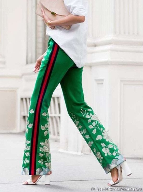 Зеленоватые штаны гуччи.