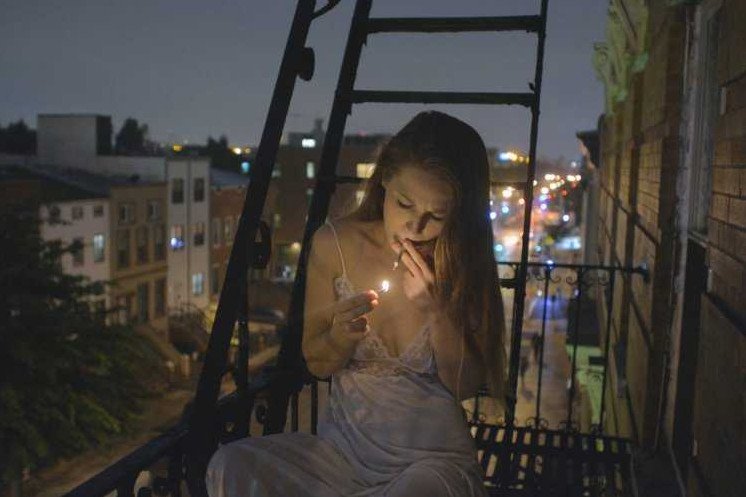 Обои девушка на балконе крыша.