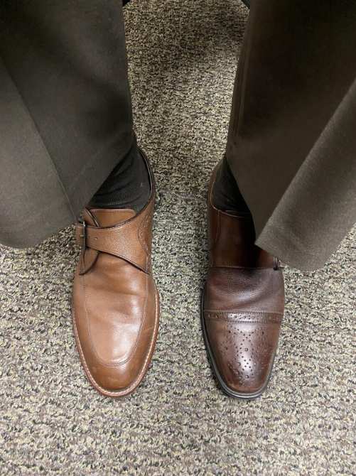 13. "Примерил оба варианта, чтобы показать супруге, запамятовал переобуться и проходил так весь рабочий день"