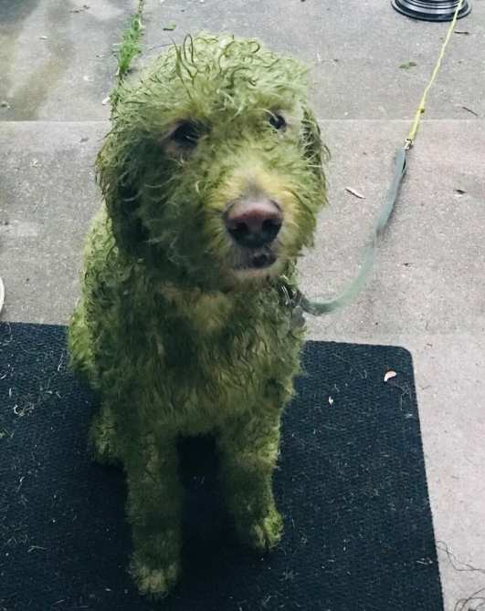 17. "Что если я выпущу белоснежного пса на только что подстриженный газон?"