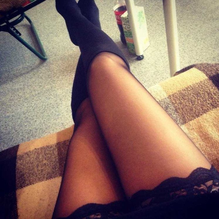 Ножки в чулках под столом.