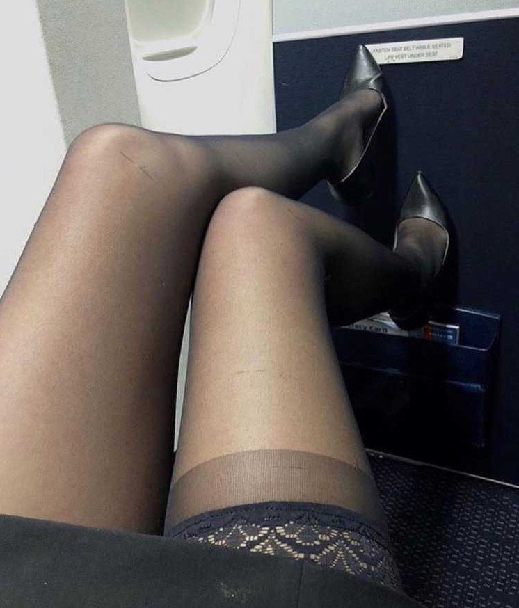 Ноги в чулках без лица.