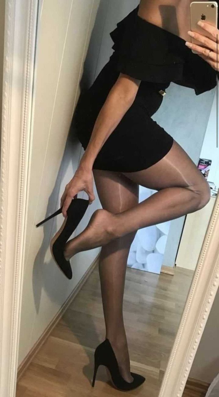 Чулки и черное прекрасное платье селфи.
