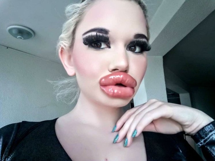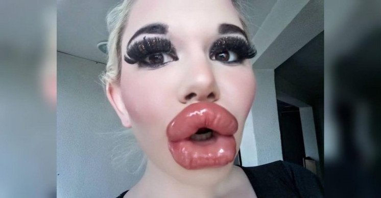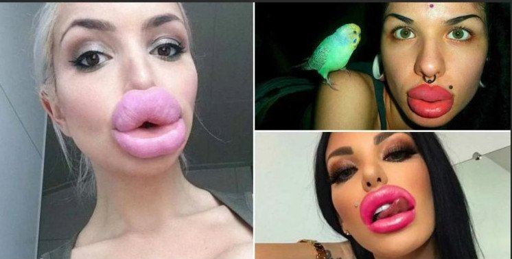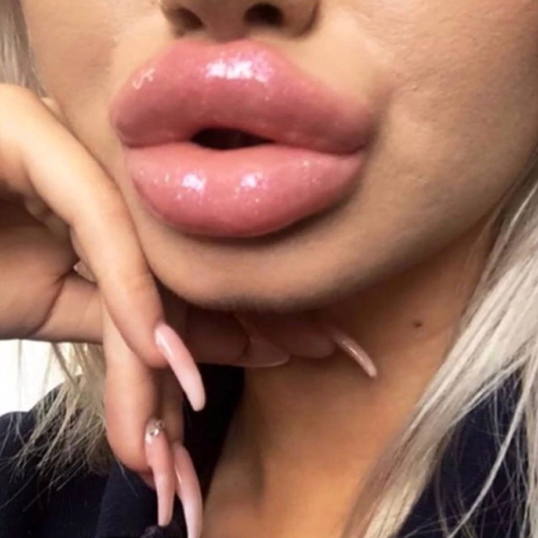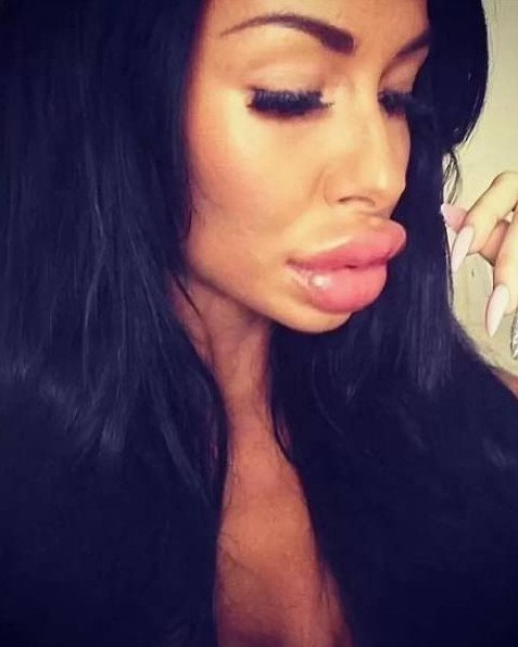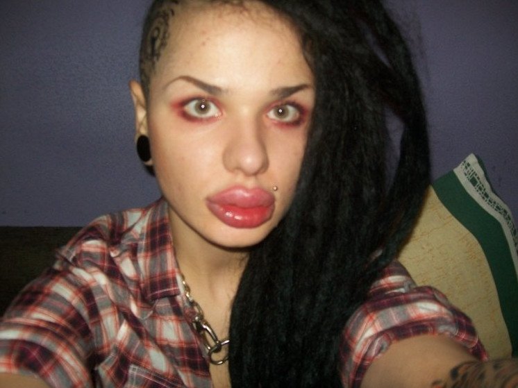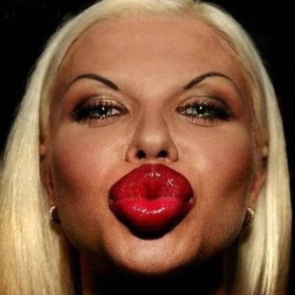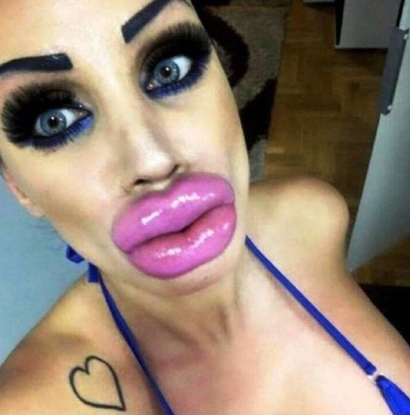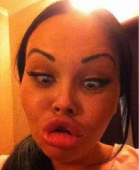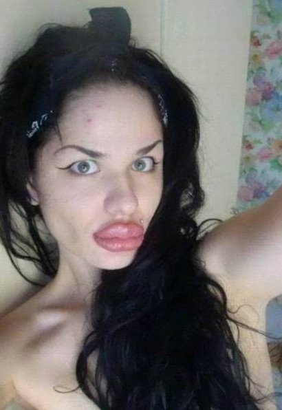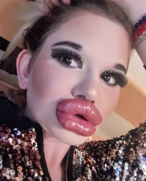 Симпатичная девушка с накаченными губами и открытым ртом.