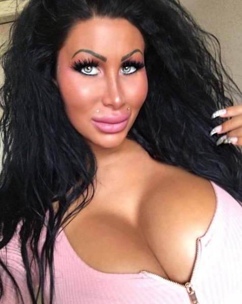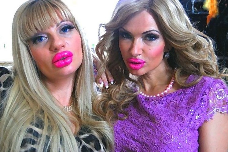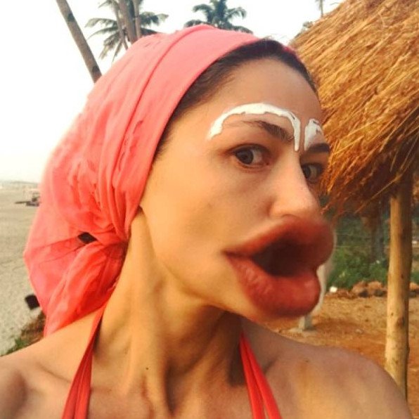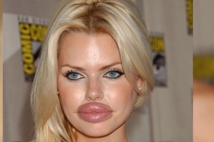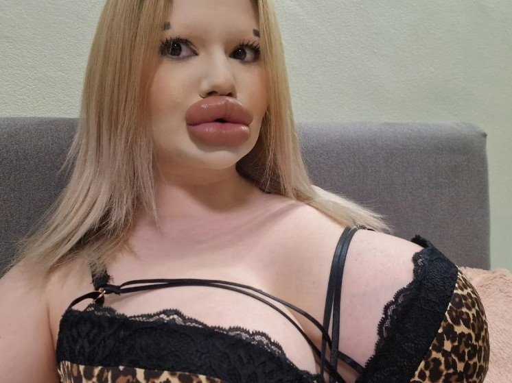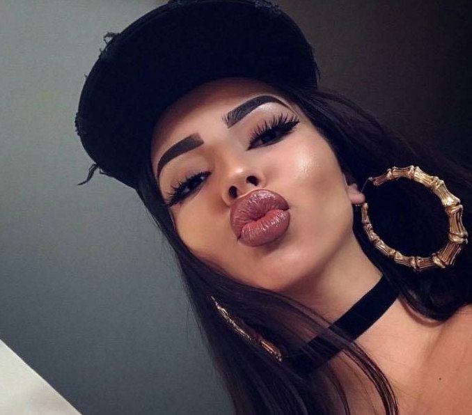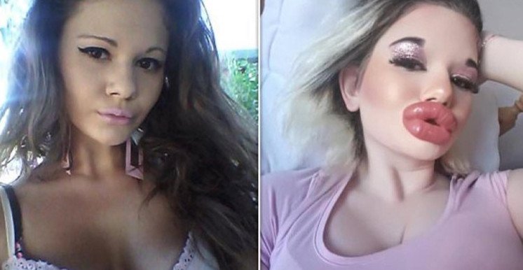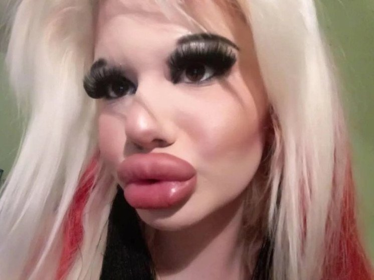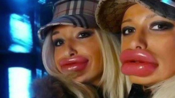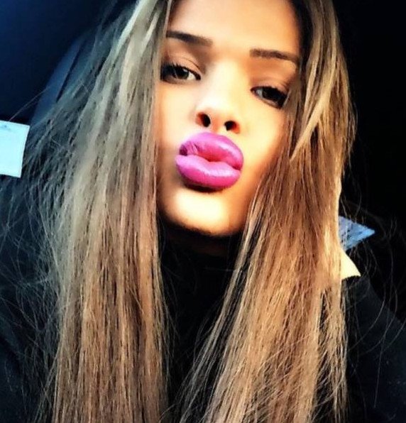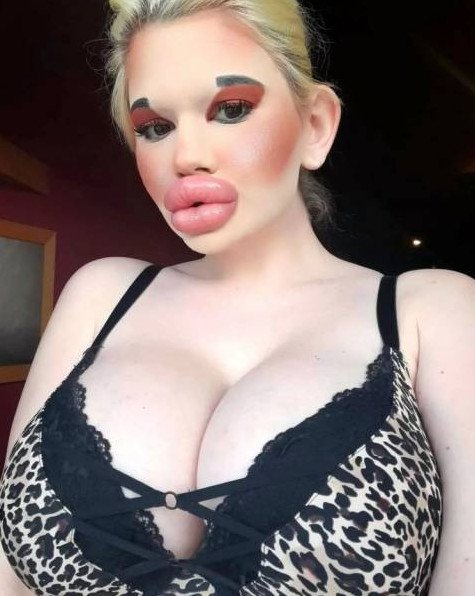 Симпатичная девушка с накаченными губами и открытым ртом.