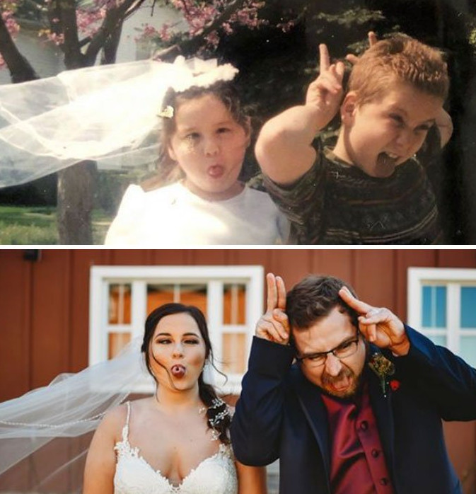 Моя сестра вышла замуж на выходных, мы воссоздали фотографию нашего юношества
