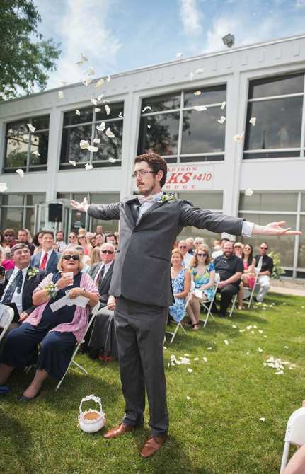 Мы пригласили всех дам, пришедших на нашу свадьбу, надеть свои старенькые свадебные платьица