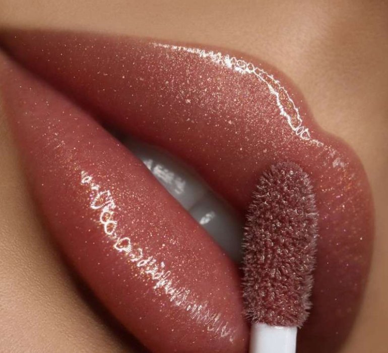 Губы с карим контуром и блеском.