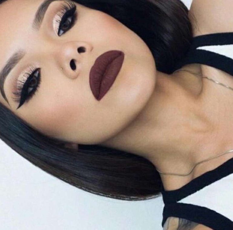 Прекрасный мейкап губ карий.