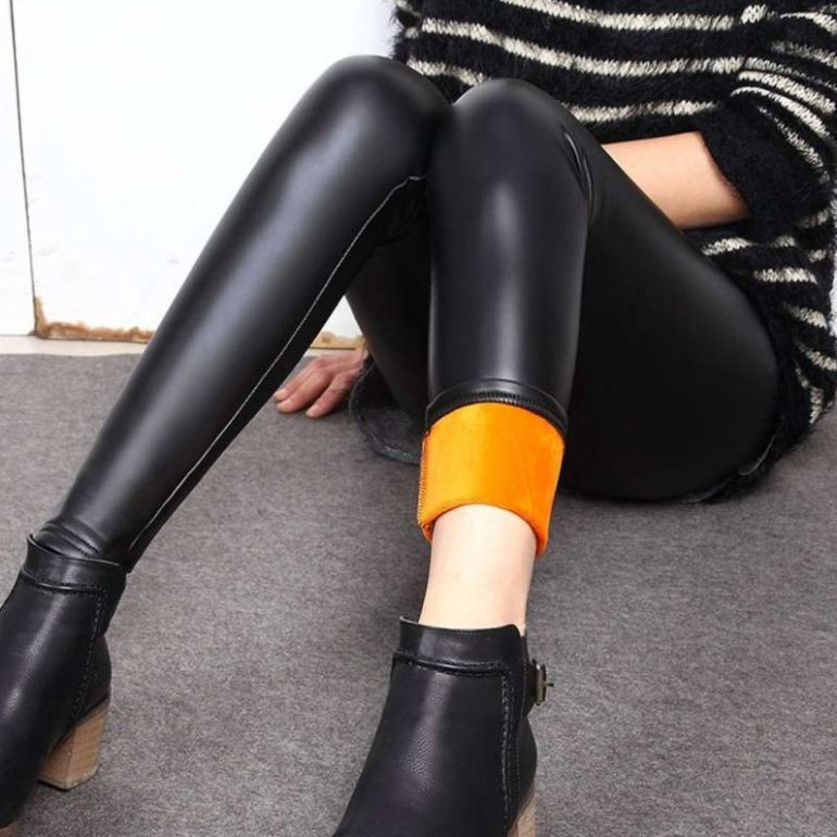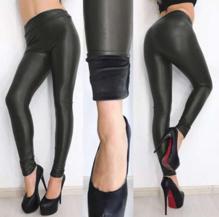 Кожаные лосины с начесом.