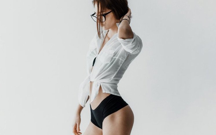 Симпатичная девушка в рубашке и трусиках.