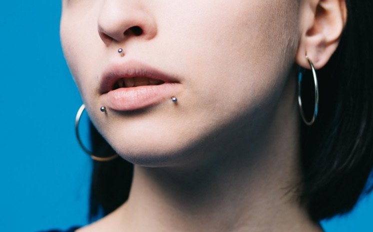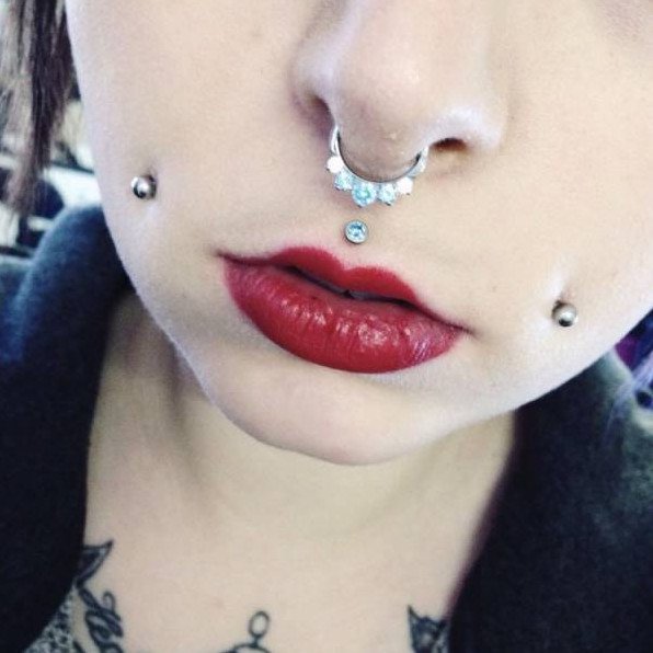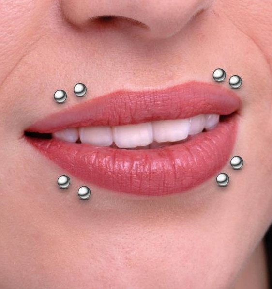 Пирсинг над губой и под губой.