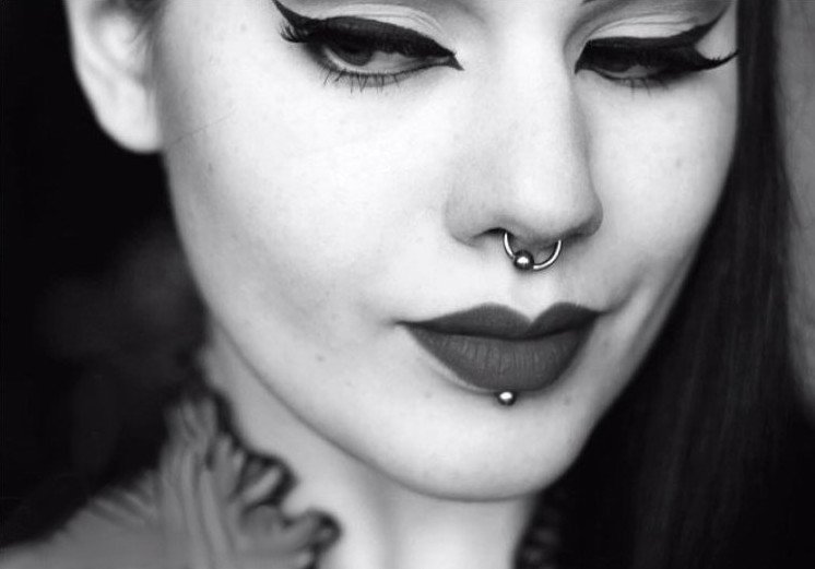 Лабрет пирсинг губы Монро.