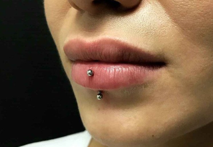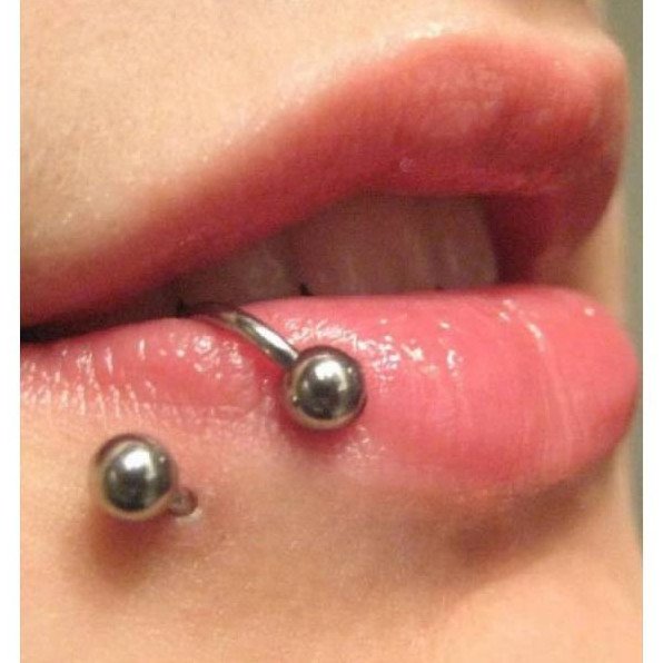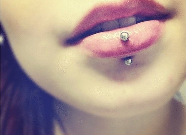 Прокол губы с 2-ух сторон.
