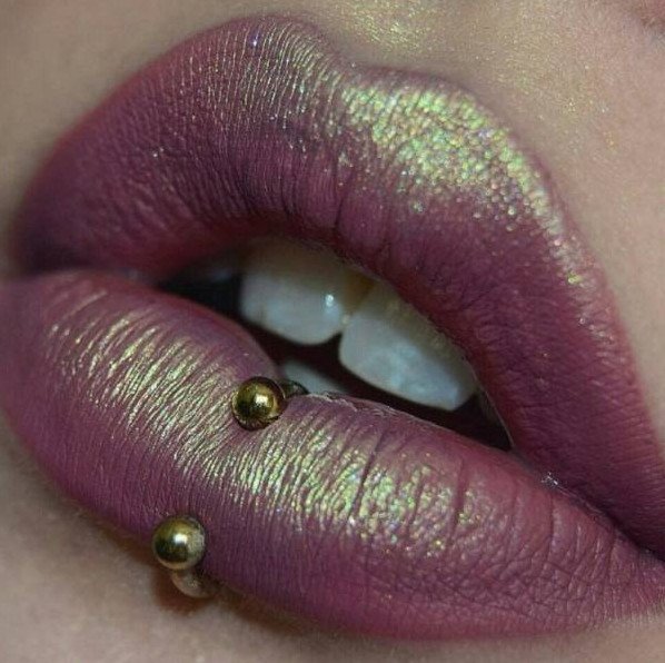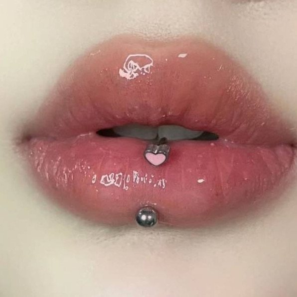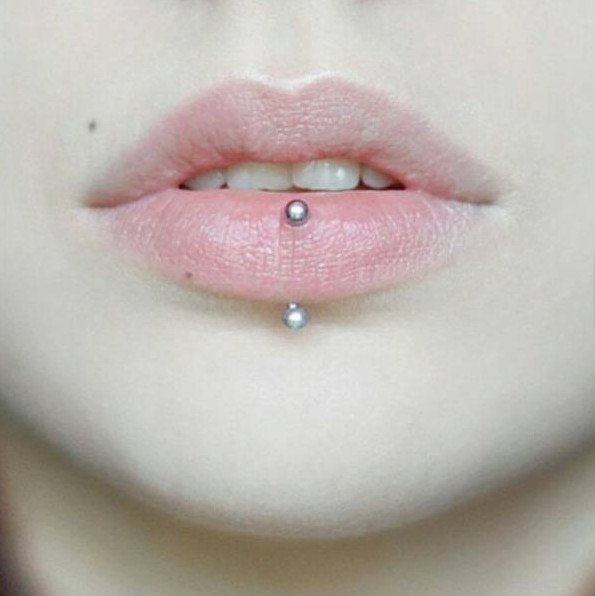 Пирсинг губы вертикальный лабрет.