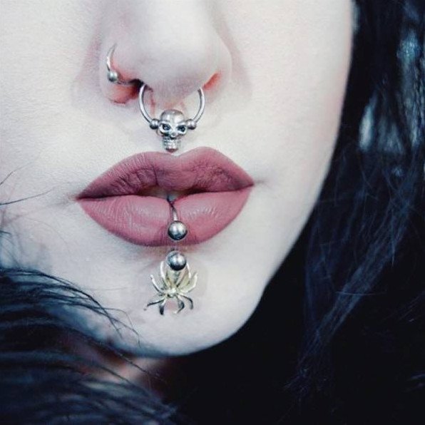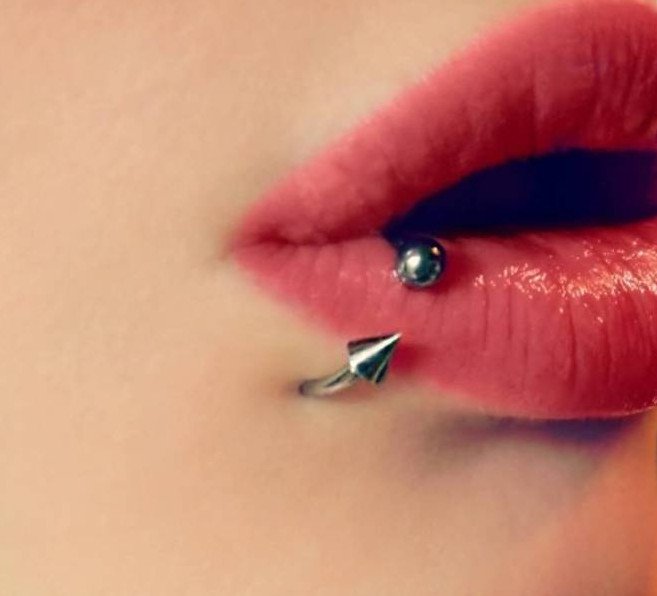 Пирсинг губы «укус гадюки».