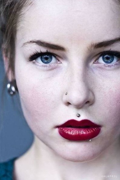 Пирсинг над верхней губой.