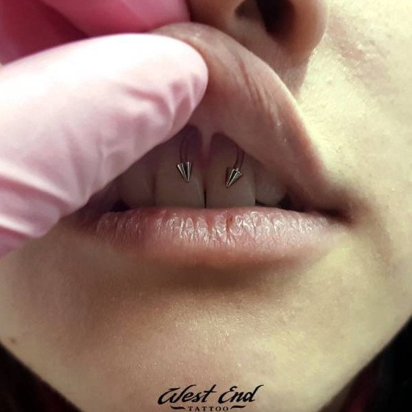 Пирсинг уздечки верхней губы.