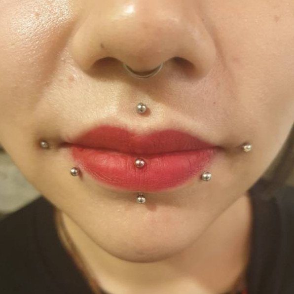 Прокол верхней и нижней губы.