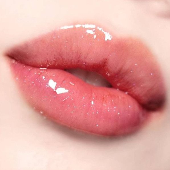 Губы с блеском для губ прозрачный.