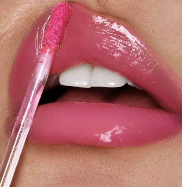 Розовая глянцевая помада.