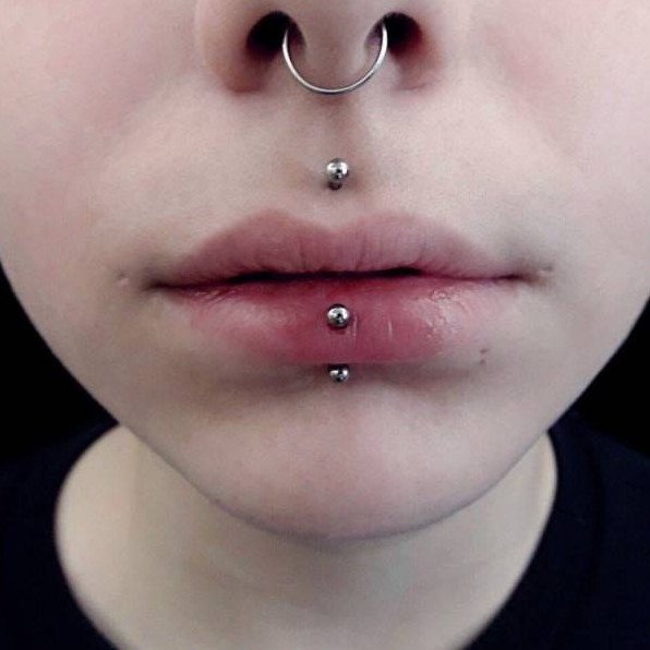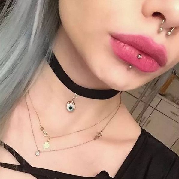 Пирсинг губы вертикальный лабрет - это еще один интересный вариант украшения для губы. В данном случае, лабрет прокалывается вертикально сквозь губу, создавая уникальный и яркий образ.