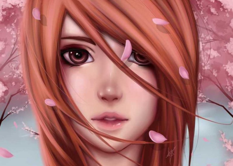 Картинки Аниме рыжая девушка красавица.