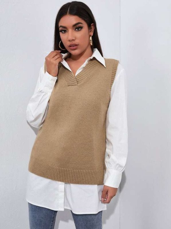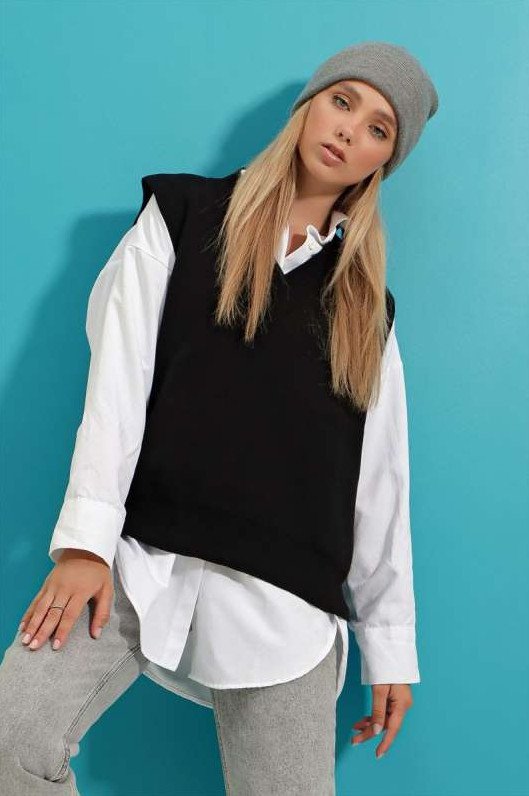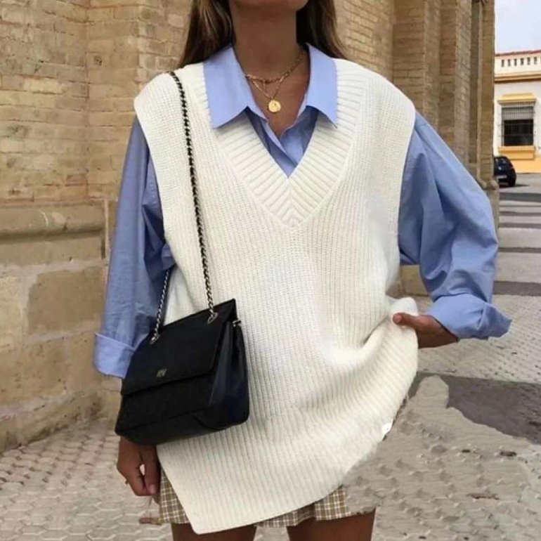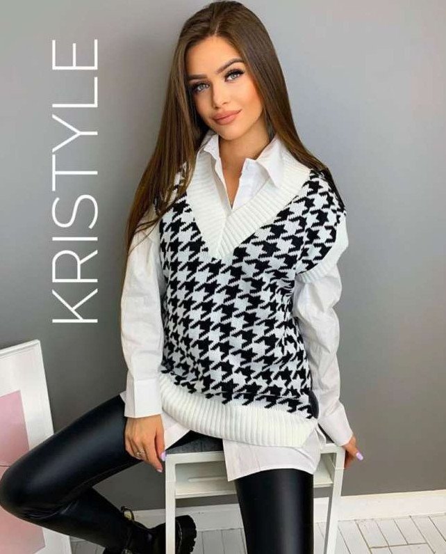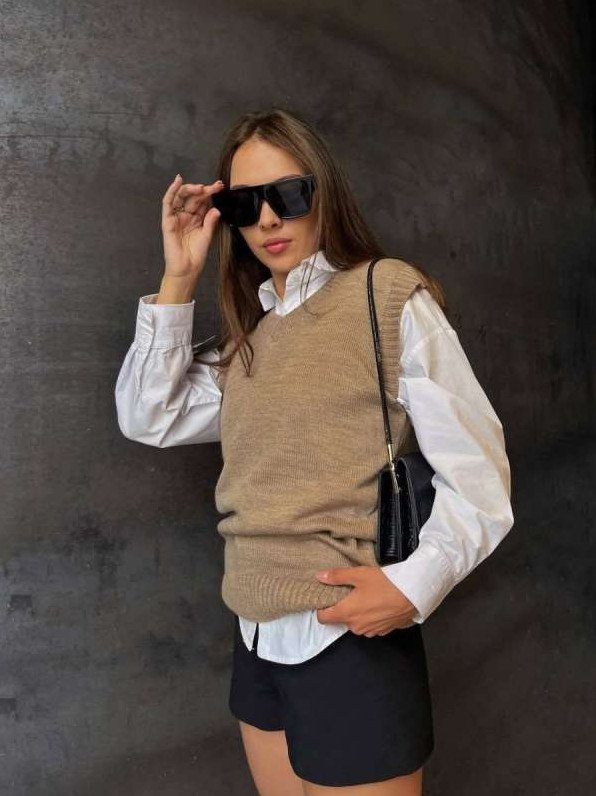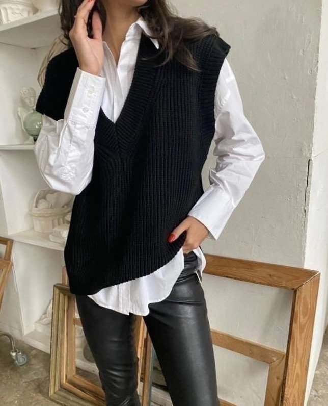 Оверсайз рубаха с жилеткой.