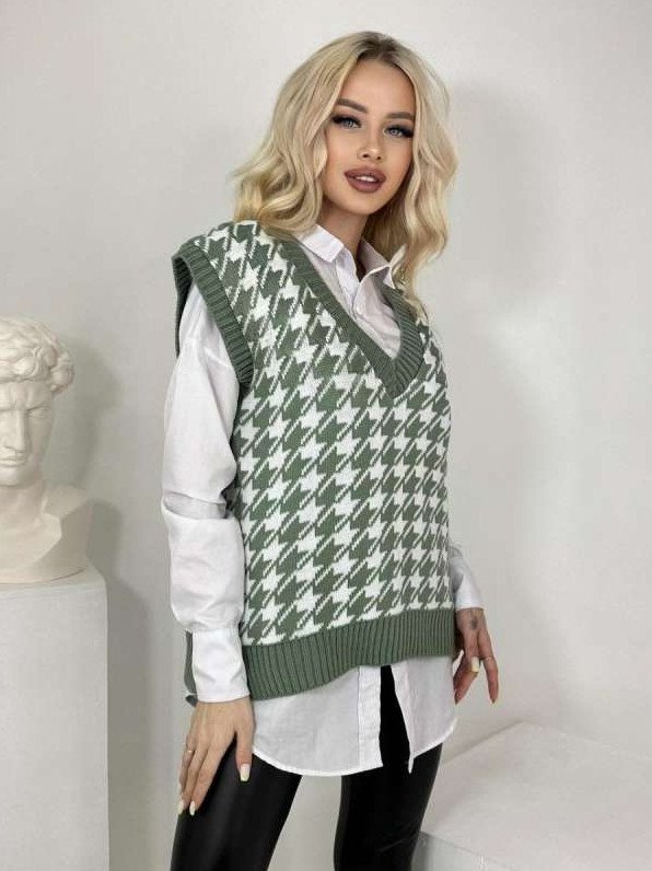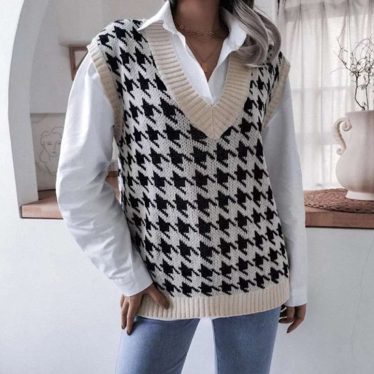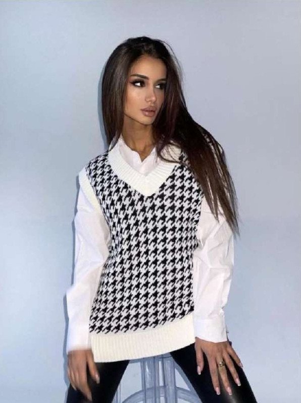 Жилетка с узором гусиные лапки.