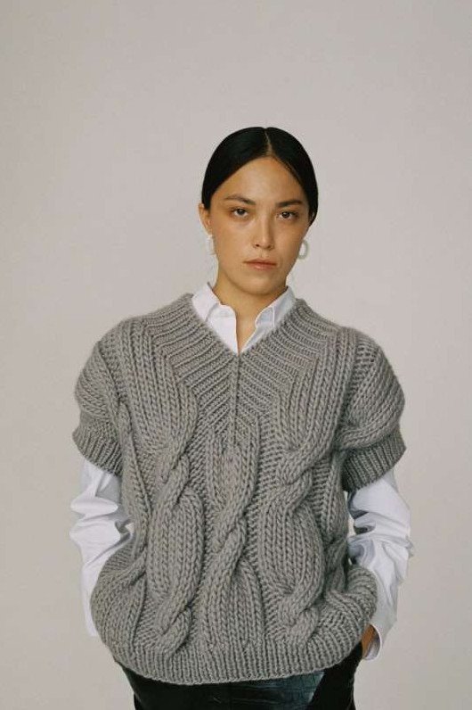 Вязаный жилет оверсайз спицами.