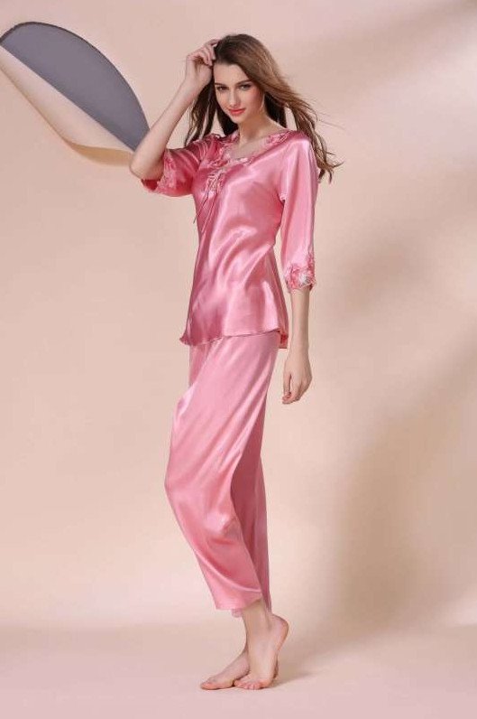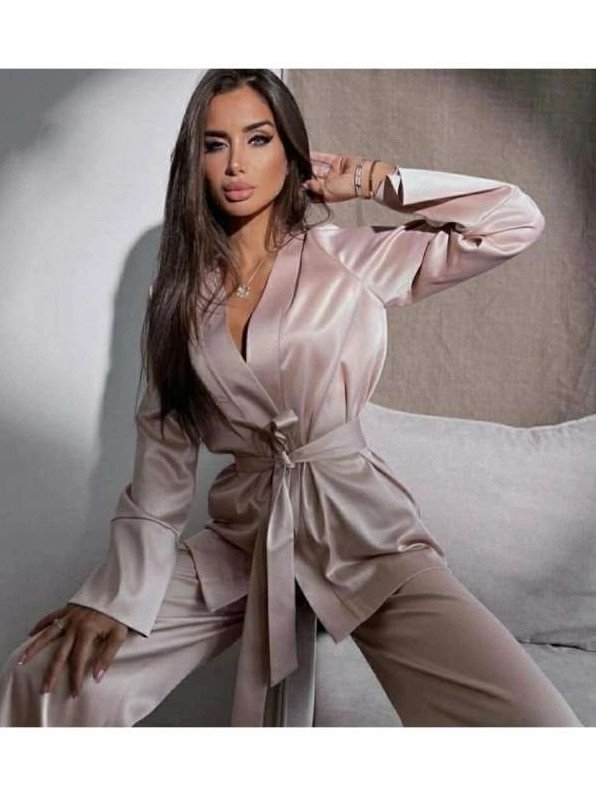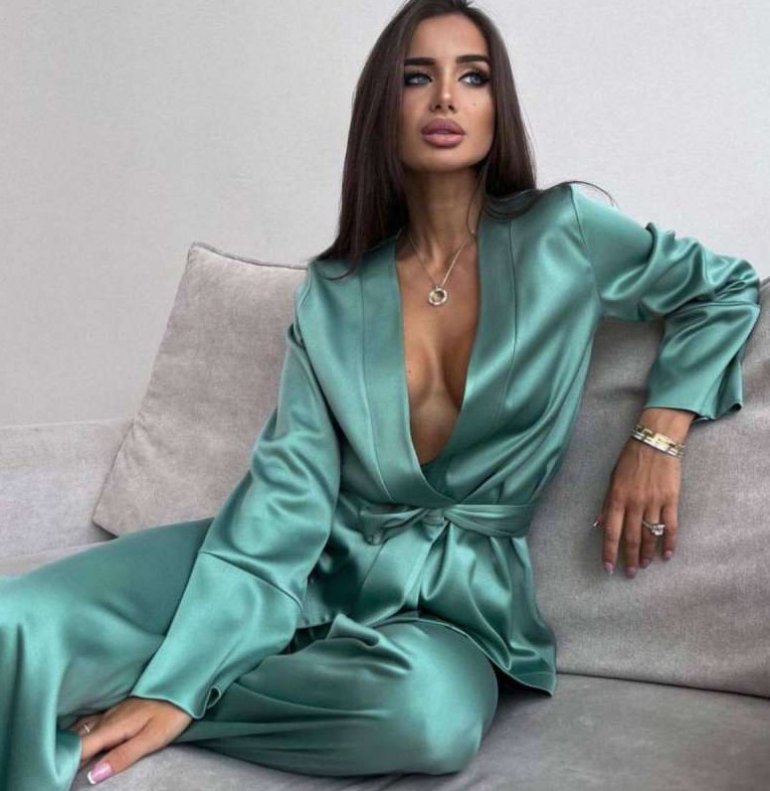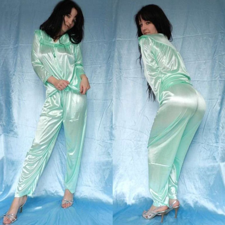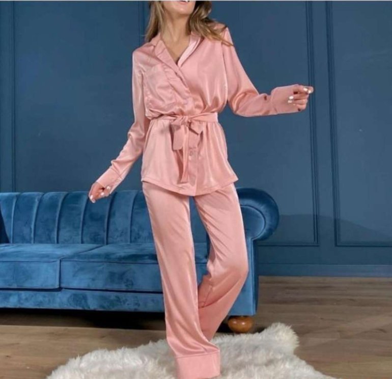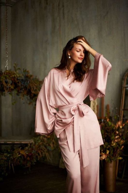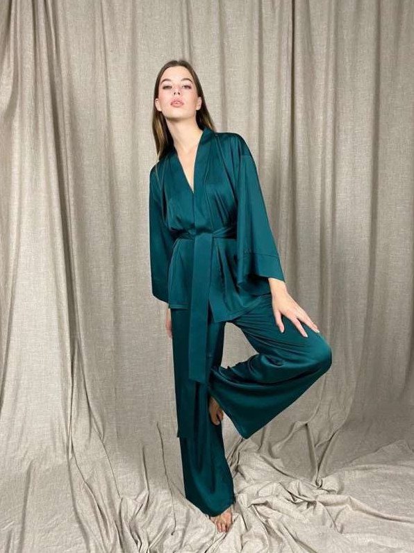 Девушка красавица в ярчайшем шелковом халатике HD.