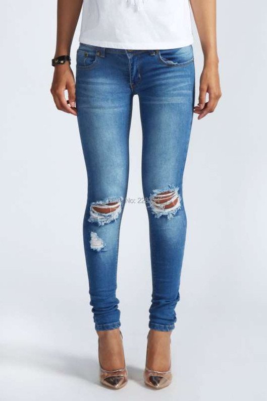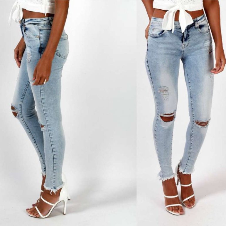 Узенькие рваные джинсы очаровательные женские.