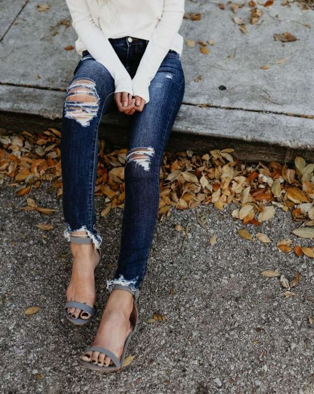 Рваные джинсы.
