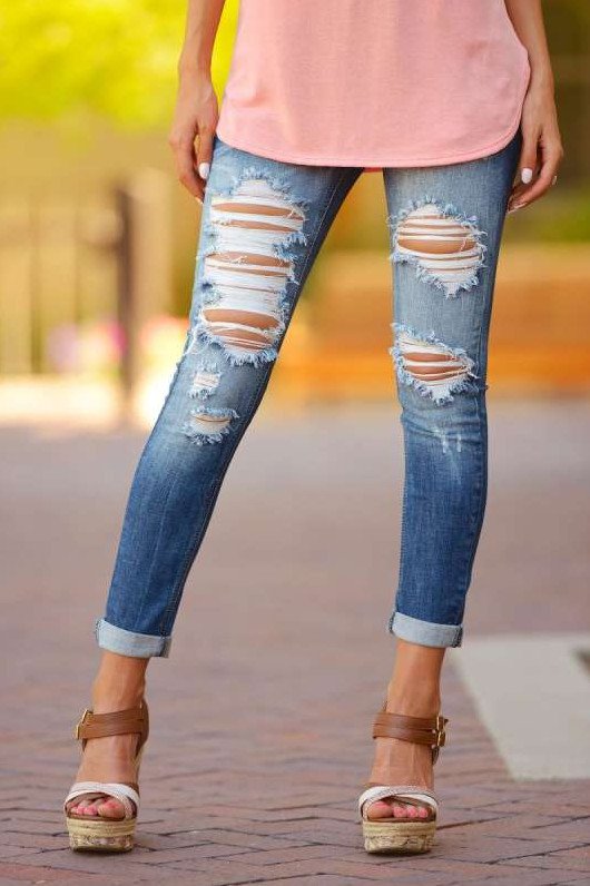 Рваные джинсы очаровательные женские.