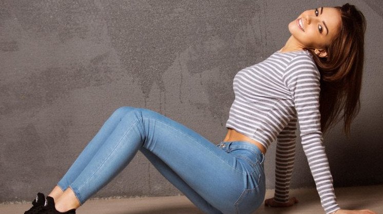 Виктория Хайновская в джинсах.