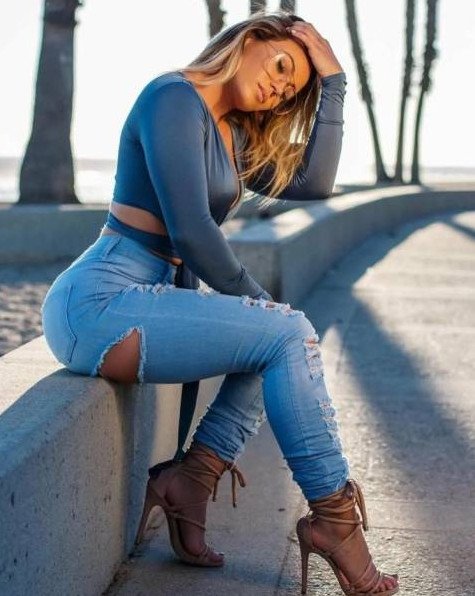 Девушка красавица в джинсах в 2019 году.