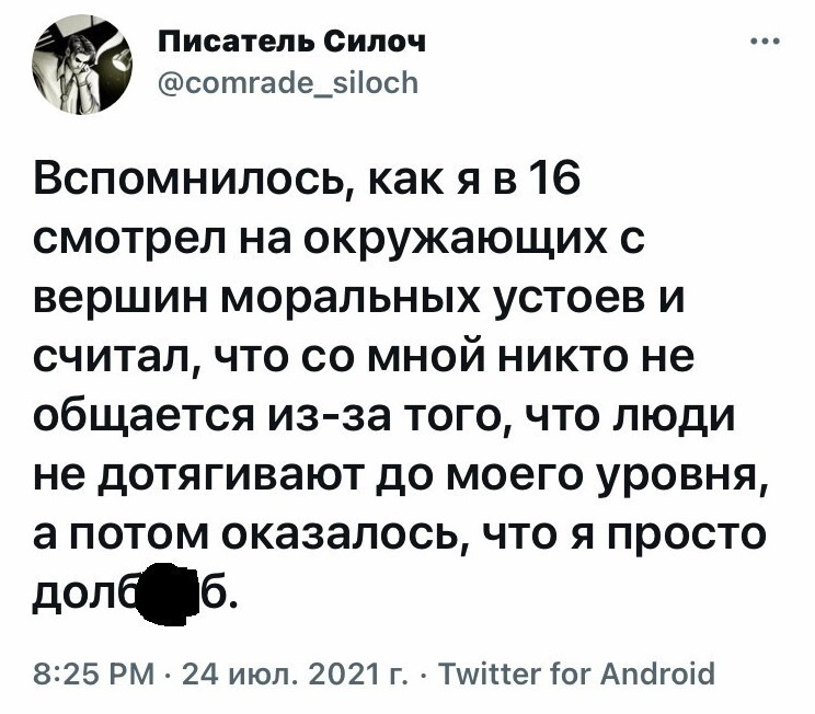 А вы помните себя в этом чудном возрасте, когда люди, еще не повзрослев, начинают творить разную дичь?
