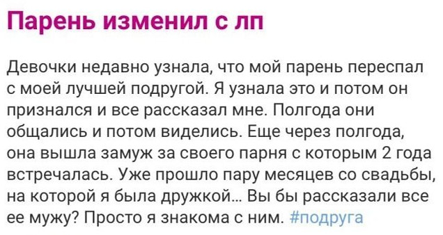 Свежая коллекция сообщений юзеров женских форумов и тематических групп социальных сетей. Герои данного поста делятся увлекательными историями из собственной жизни либо же просят совета у окружающих на волнующие их темы. Давайте поглядим, как все это выглядит, в продолжении.